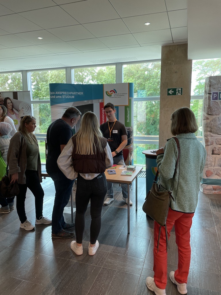 Als Team der Präsenzstelle Schwedt | Uckermark waren wir ebenfalls mit einem Messestand vor Ort. Unser Fazit: Das Interesse an unseren Informationsangeboten rund ums Studium ist überwältigend. Welche Voraussetzungen benötige ich für ein Studium? Kann ich in Brandenburg für meinen Studienwunsch bleiben? Wie bekomme ich meine Eltern von einem Studium überzeugt? Zahlreiche Gespräche konnten wir führen und persönliche Beratungstermine mit Jugendlichen und ihren Eltern wurden bereits vereinbart. Für uns war es auch wichtig, mit Lehrkräften in Kontakt zu treten. Ein Teil unseres Angebotes ist das Thema Studienorientierung und -beratung direkt in Bildungseinrichtungen, wie bspw. am 13. September im Christa-und-Peter-Scherpf-Gymnasium Prenzlau. Durch ein Instagram-Quiz, bei dem es hübsche, wiederverwendbare Glasflaschen zu gewinnen gab, kamen wir mit weiteren Schülerinnen und Schülern ins Gespräch.