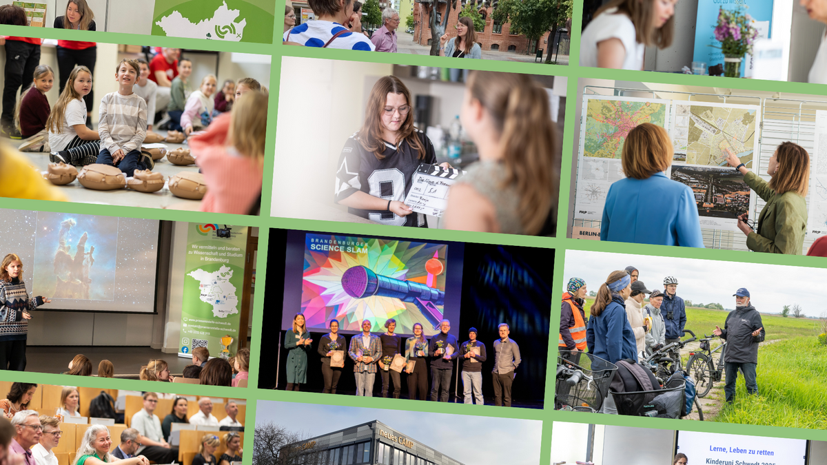 Darin blicken wir zurück auf ein aufregendes und ereignisreiches Jahr 2025: Vier Science Slams, zahlreiche Bürgervorlesungen, eine Architekturausstellung mit der FH Potsdam, eine wissenschaftliche Fahrradtour durch den Flussauennationalpark, diverse Projekte mit der Kinderfilmuni Babelsberg, die Kinderuni Schwedt u.v.m. In Zahlen gefasst, heißt dies: Über 1.200 Bürger:innen besuchten unsere Veranstaltungen, 250 Schüler:innen informierten wir zum Studieren und zeigten Perspektiven im Land Brandenburg, 16 Unternehmen vermittelten wir an geeignete Hochschulpartner.